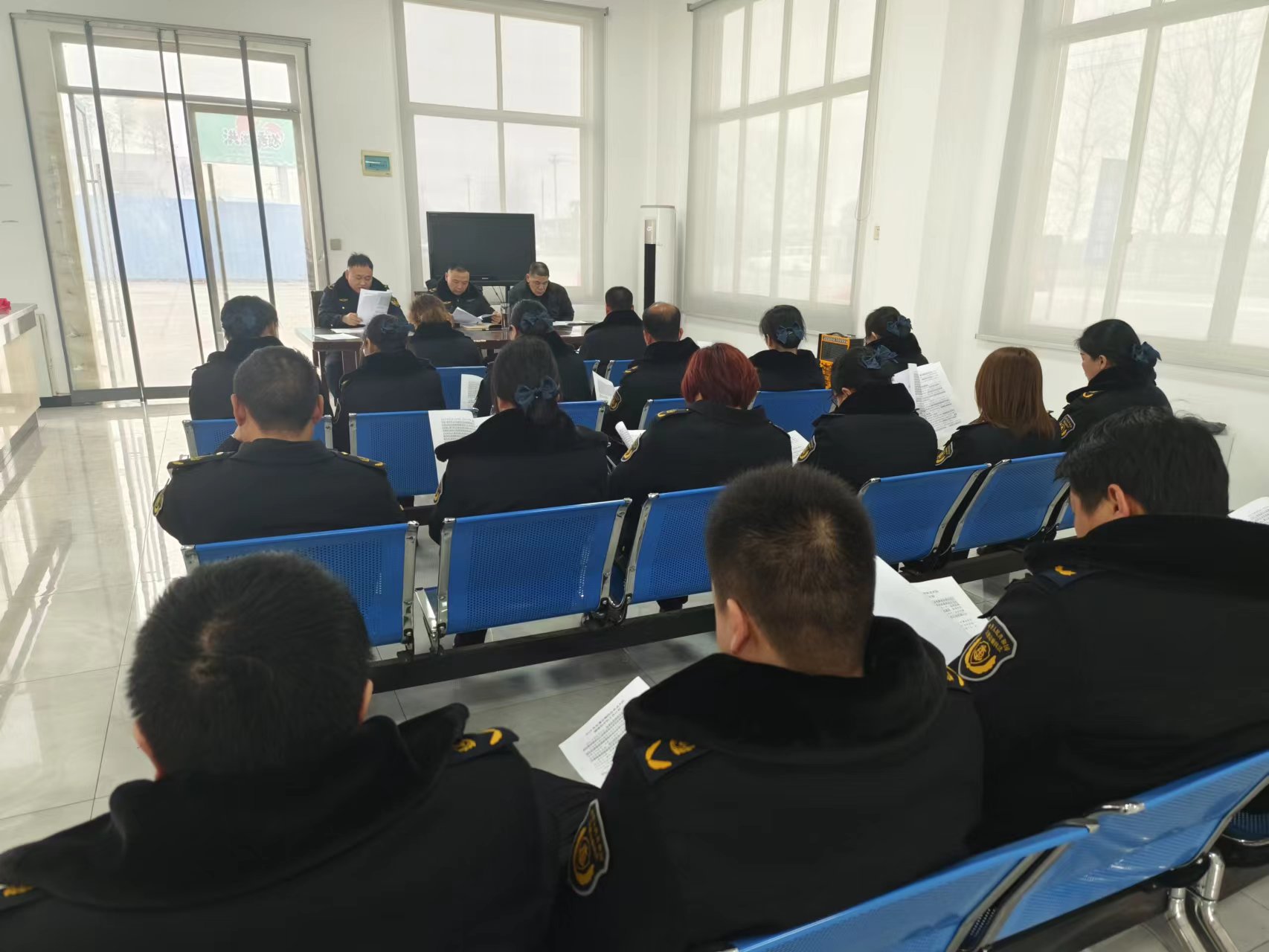 通讯员肖继军、张俊报道:2月6日,为了认真学习贯彻落实党的二十大精神及“建设交通强国”的相关要求,让全体交通运输执法人员深刻领悟“两个确立”的决定性意义,增强“四个意识”、坚定“四个自信”、做到“两个维护”,自觉在思想上政治上行动上同以习近平同志为核心的党中央保持高度一致;进一步教育整顿交通运输执法队伍,努力打造“政治坚定、素质过硬、纪律严明、作风优良、廉洁高效”的新时代交通运输执法铁军,根据市交通运输局统一部署及大队年度工作计划,洪湖市交通运输综合执法大队四中队,组织全体执法人员在小港超限检测站召开了2023年度执法队伍整训暨货车非法改装与超限治理攻坚动员大会。